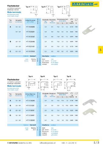 Typ Nenngröße Artikel-Nummer Steck breite Steck dicke Abmessung (mm)